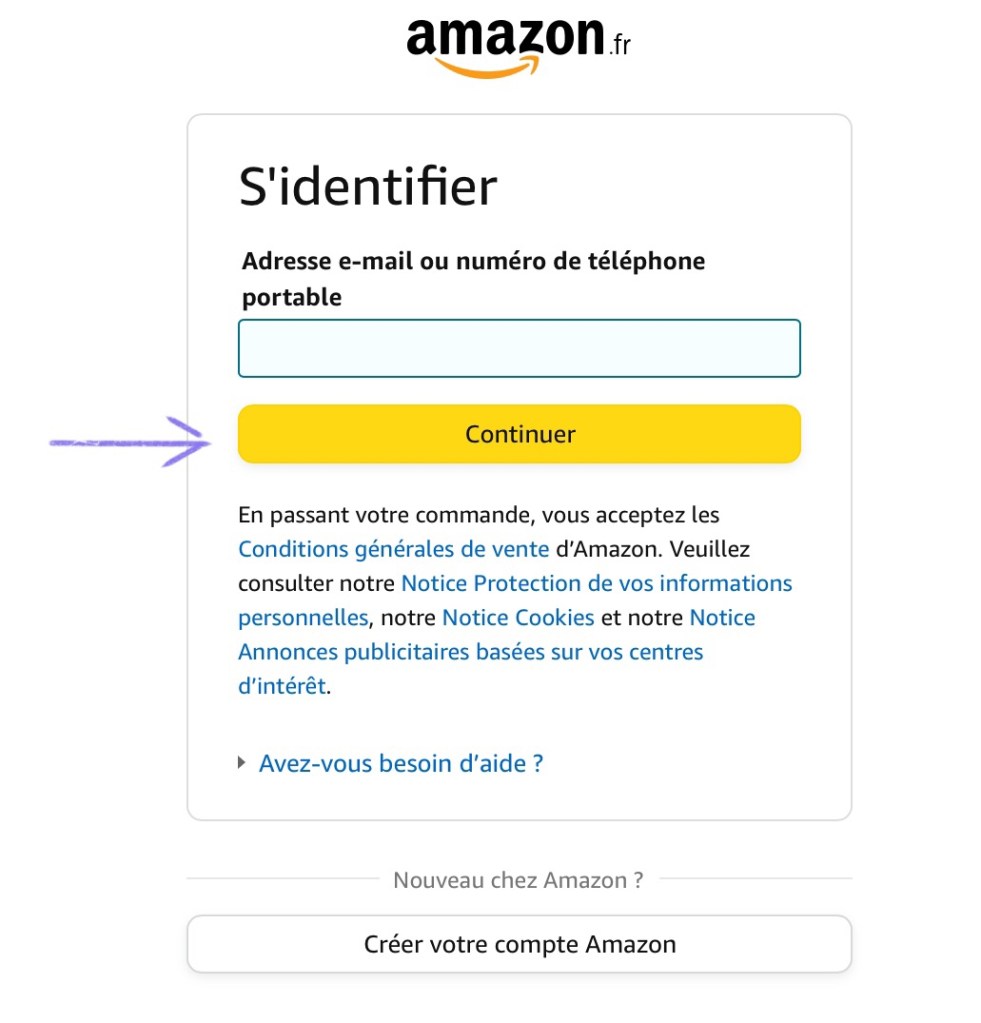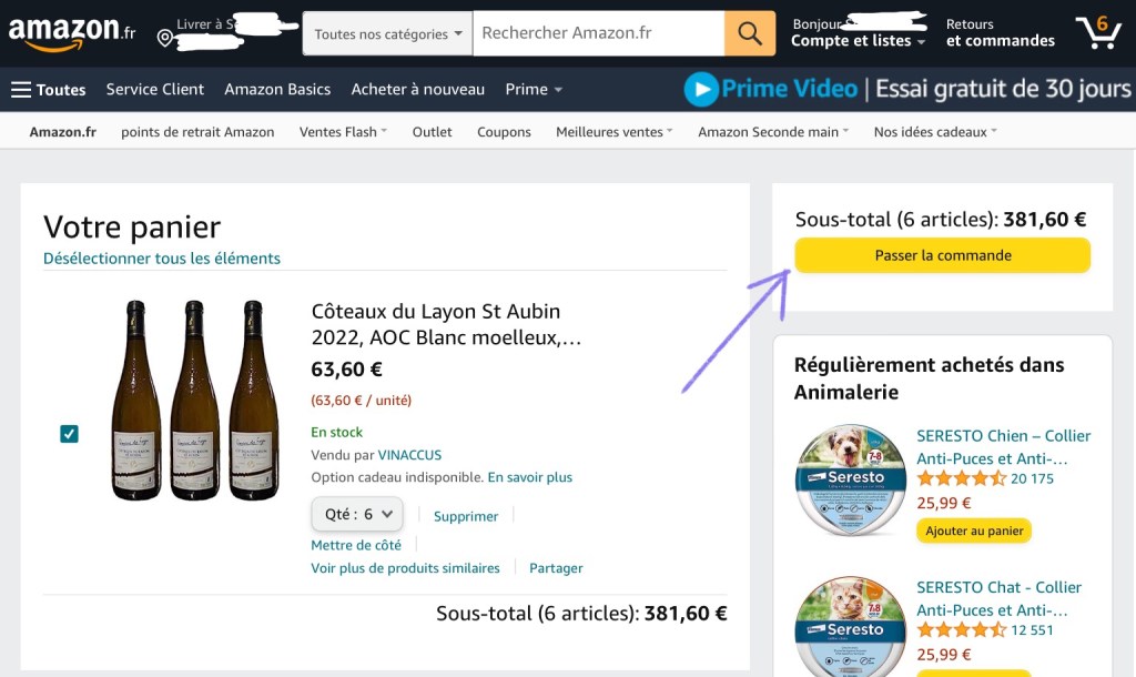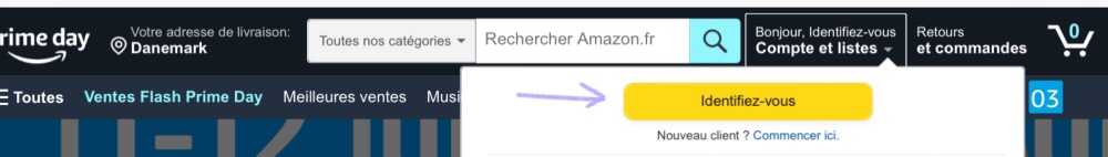 A window may appear where you’re asked wether you wish to subscribe to Amazon Prime or not. If you do, press “Continuer avec Prime – Payer plus tard”. If you don’t, press “Continuer sans bénéficier des avantages Prime”.