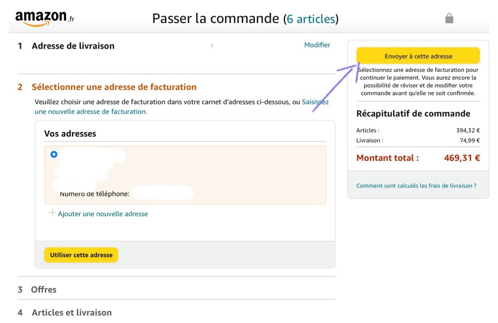You’re now back in the previous screen and can press “Utiliser ce mode de paiement”. This will take you to the screen where you confirm your billing adress. If you wish to change it press ”Ajouter une nouvelle adresse”. If the adress is correct, press ”Envoyer à cette adresse”.