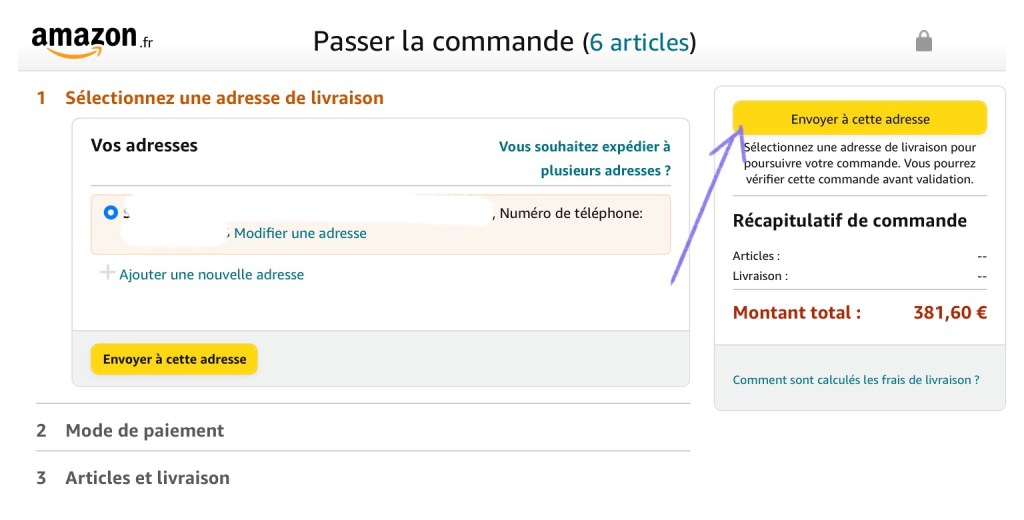 This is where you confirm your address. By default the address you’ve registered with is shown, but you can change it with “Modifier une adresse”. If the address is correct press “Envoyer à cette adresse”.
