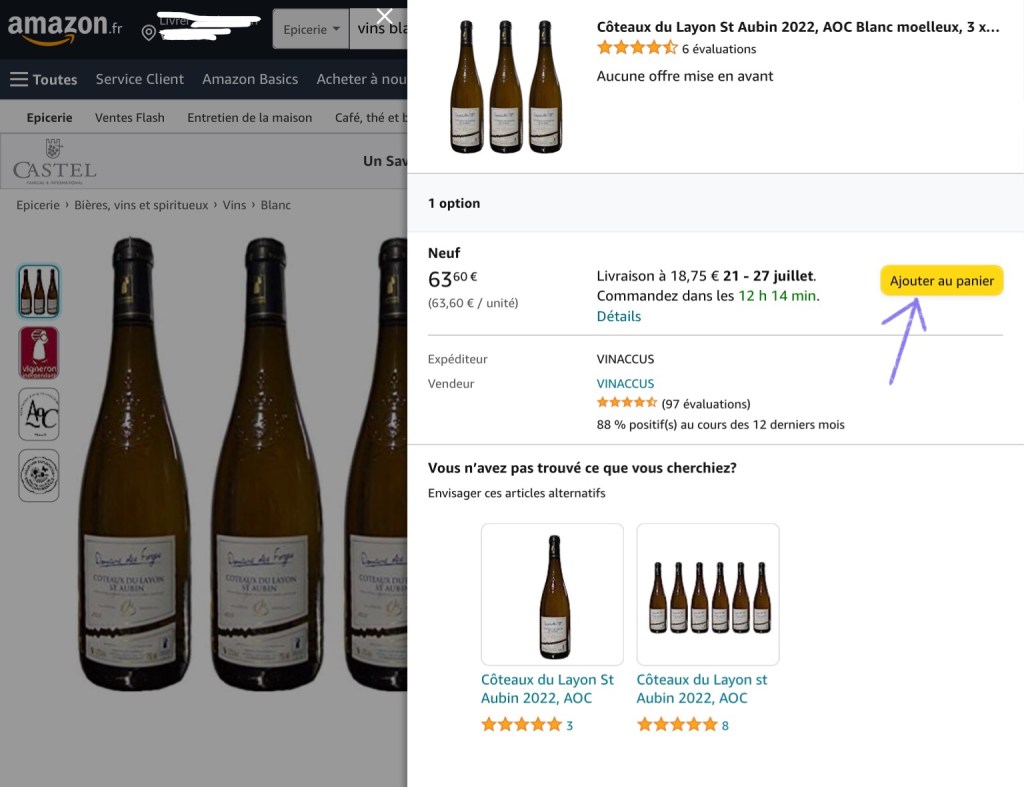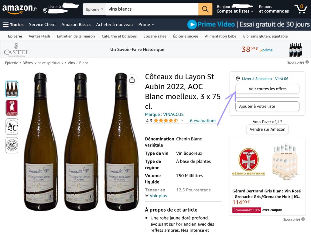An alternate product page shows a button for the available vendors. Press “Voir toutes les offres”.
